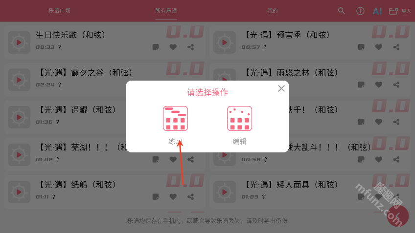 7、进入文件选择界面后,定位到你刚才存放乐谱的文件夹,从中挑选需要导入的乐谱文件。