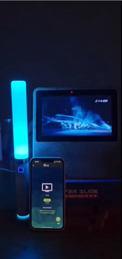 4、另外准备一台用于观看抖音直播的播放设备,在演唱会节目正式开始时,它会和荧光棒/夜灯同步切换至云端互动状态,让你体验到与线上演唱会影片声光频率一致的互动效果。