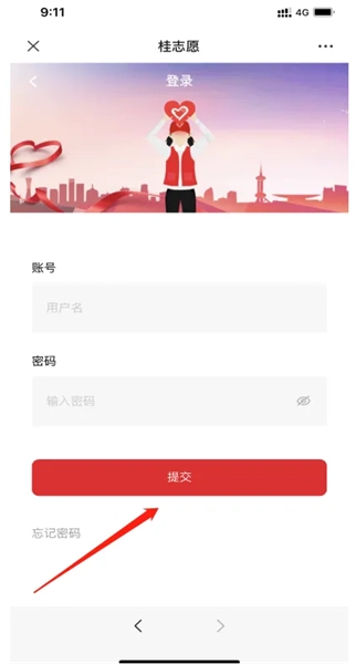 第九步:输入用户名与密码,随后点击提交按钮。(温馨提示:登录时可选择填写身份证号或者用户名作为账号。)
