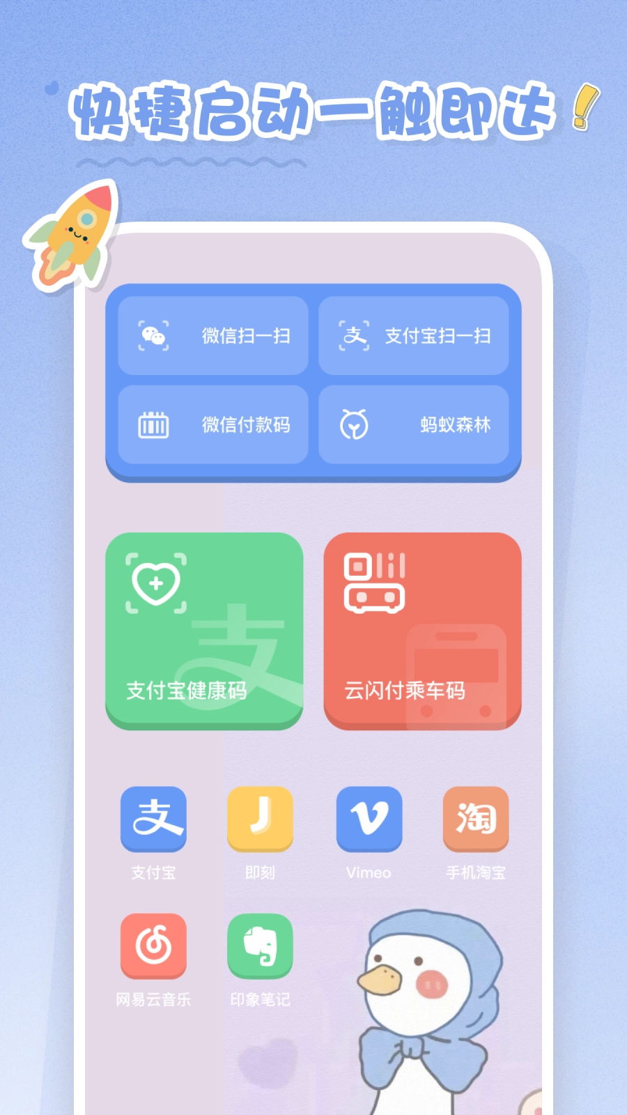 --扫一扫、乘车码、付款码等常用功能的快捷方式,在桌面点击即可快速启动。