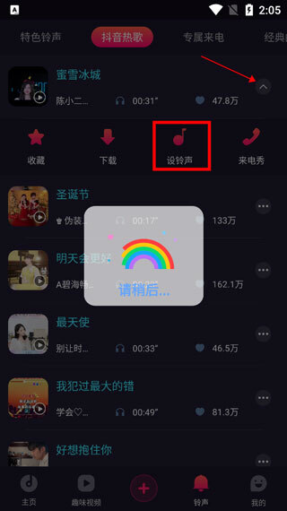 7、点击右侧小括号,选择“设铃声”等待片刻就可以啦!