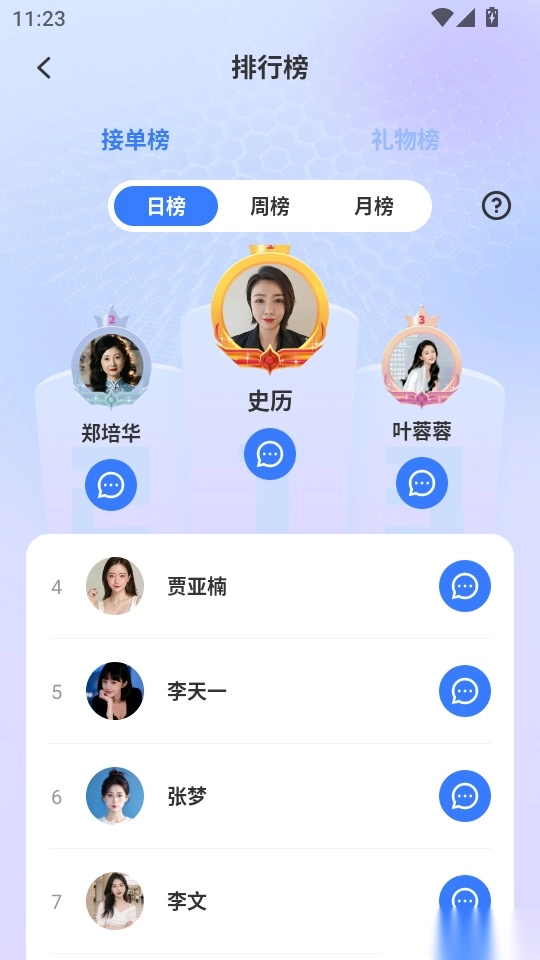 这样一来,大家就能查看当天最新的倾诉师日榜列表信息了。