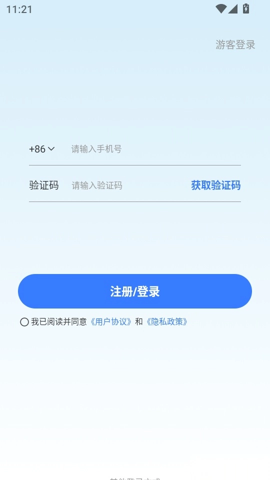 2. 后续在登录界面输入手机号和验证码,点击“注册/登录”按钮即可进入程序