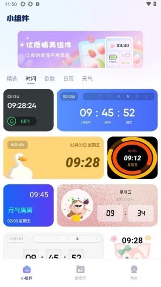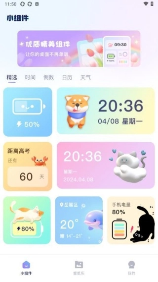 1、安装,打开软件进入首页,这里精选各种小组件;
