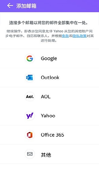 3. 在随之打开的添加邮箱界面,选择您想要添加的邮箱账号即可。