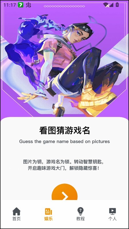 在娱乐界面中,我们可以体验到趣味十足的看图猜游戏名玩法。