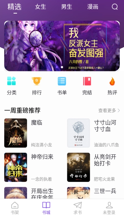 3、书城:点击下方“书城”,有适合男生、女生的小说和漫画,还有精选内容和漫画专题。