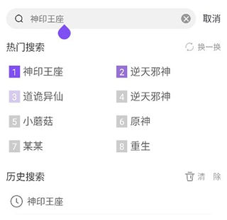 4、搜索:点击右上角的放大镜图标,可搜索小说或漫画名称。