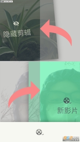 操作。分别是:顶部下拉:打开系统设置;图片左滑:隐藏当前剪辑;图片右滑:添加到新影片。