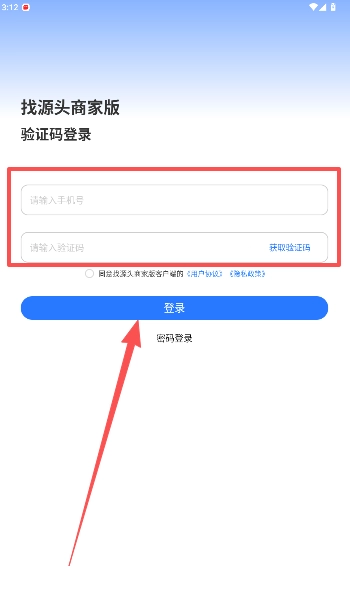 2、可通过手机号接收短信验证码登录,也能直接使用找源头原版账户进行登录。