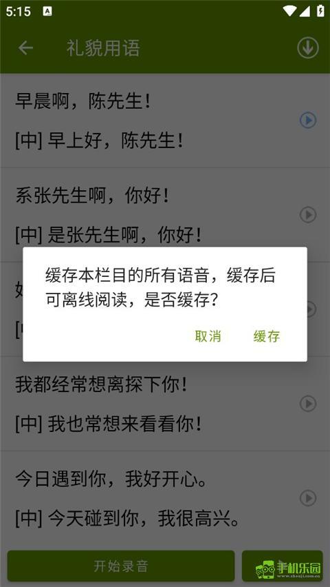 2.选择想要学习的对话场景,即可缓存到本地进行离线学习;