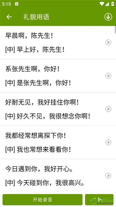 2、比如我们进入礼貌用语,可以看到有中文以及文字谐音字和语音播放。