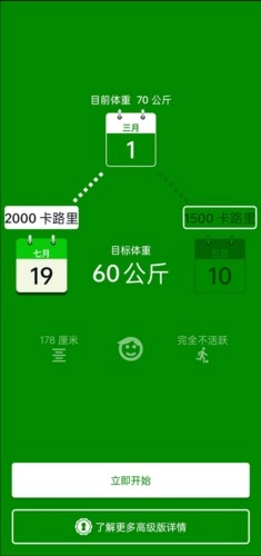 2、填写你的身高、体重、运动量等信息,立即开始;