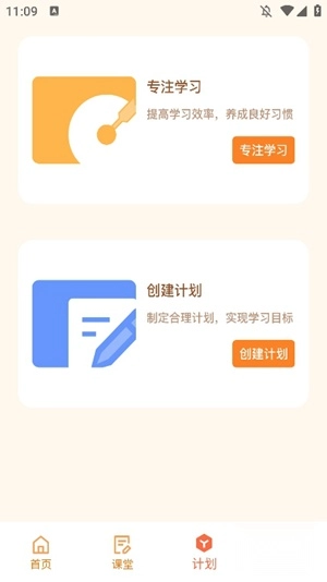 底部导航栏设有醒目的“学习计划”入口,点击即可一键进入个人学习管理中心。