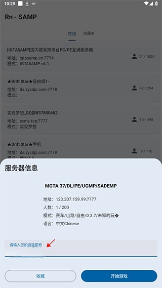 4、在服务器列表里,选择服务器了。
