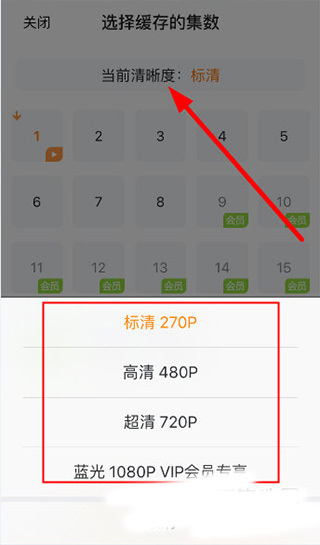 3、选择你要的集数的清晰度;