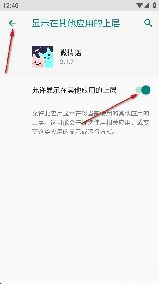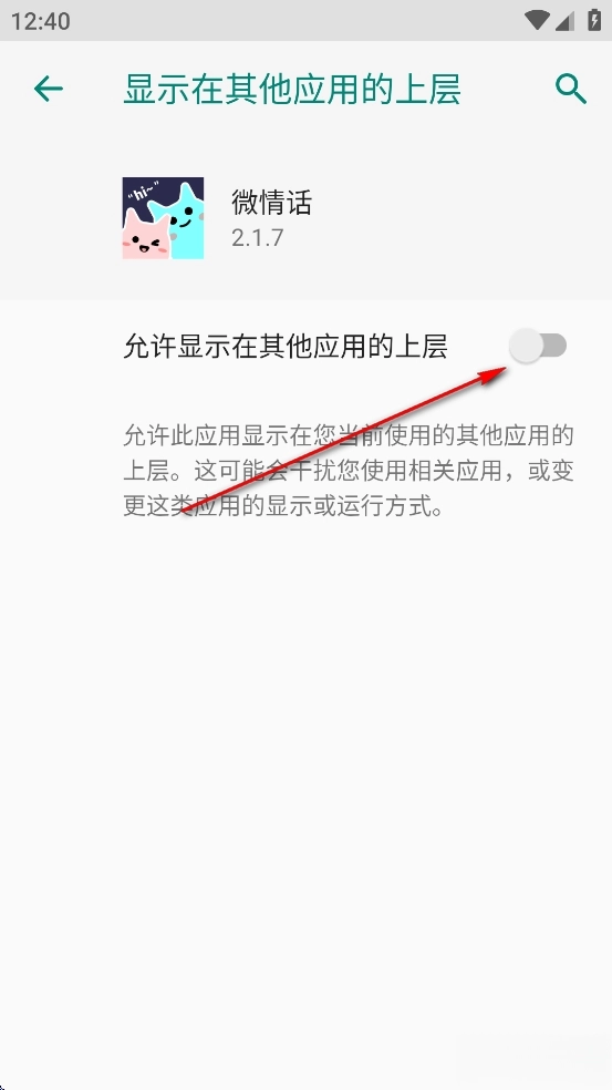 点击【允许显示在其他应用的上层】后面的开关