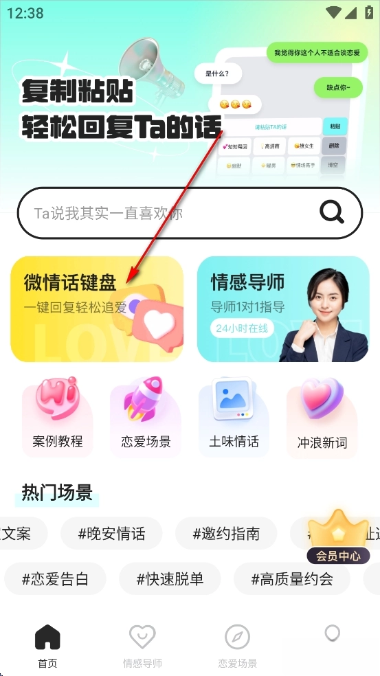 在首页点击【微情话键盘】