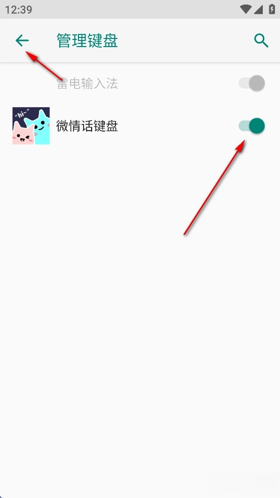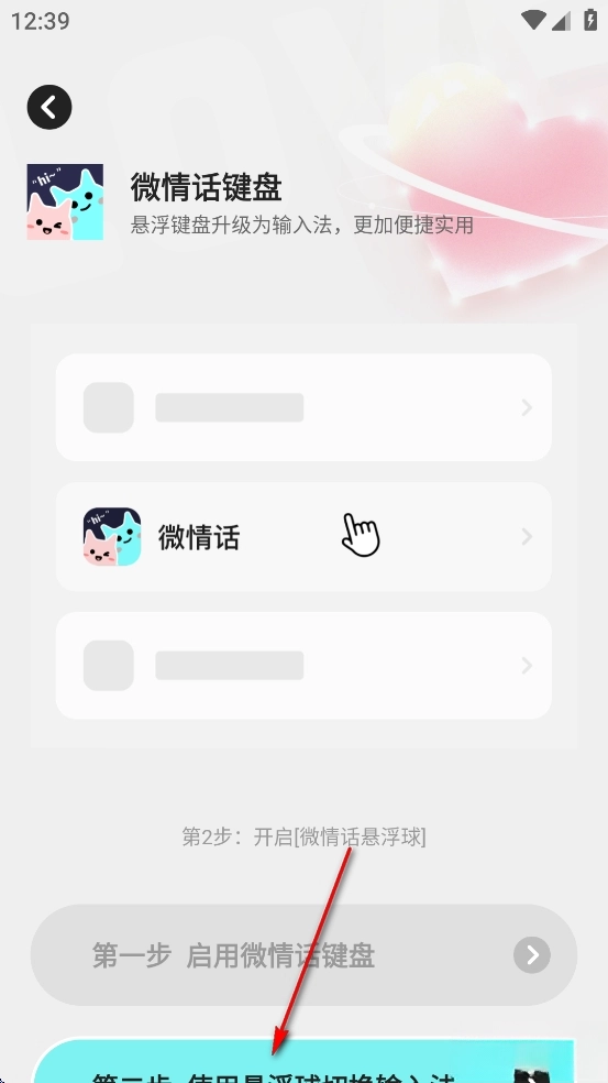 点击【微情话键盘】后面的开关