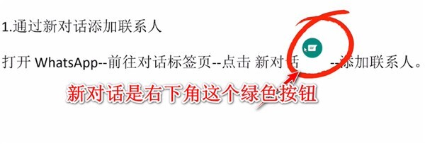 打开whats--前往对话标签页--点击新对话-添加联系人。(注:这里可以添加我们所知道的未曾保存过的联系人)