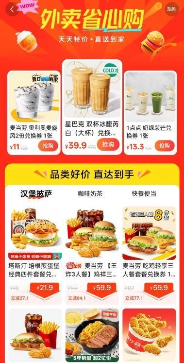 多品类覆盖:包括美食、超市百货等。
