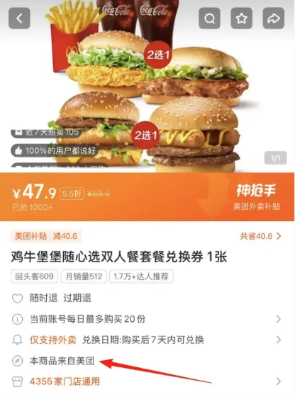 快手App首页点击“团购”,选择“外卖”就能看到附近的各种外卖商家,选择你想要的商品,在商品首页可以看到“本商品来自美团”,也就是说在快手购买外卖券之后需要去美团App下单