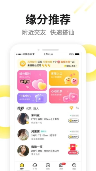3、精准匹配,兴趣相投:依据用户的兴趣爱好与价值观展开匹配,使相遇更具意义。