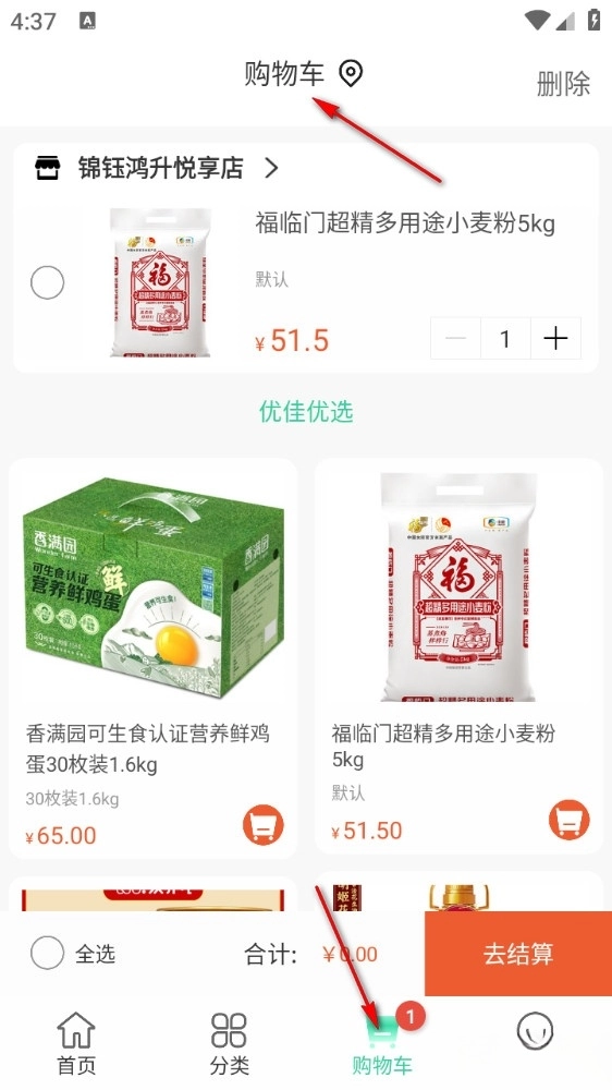 添加成功后返回主页面点击下方购物车查看