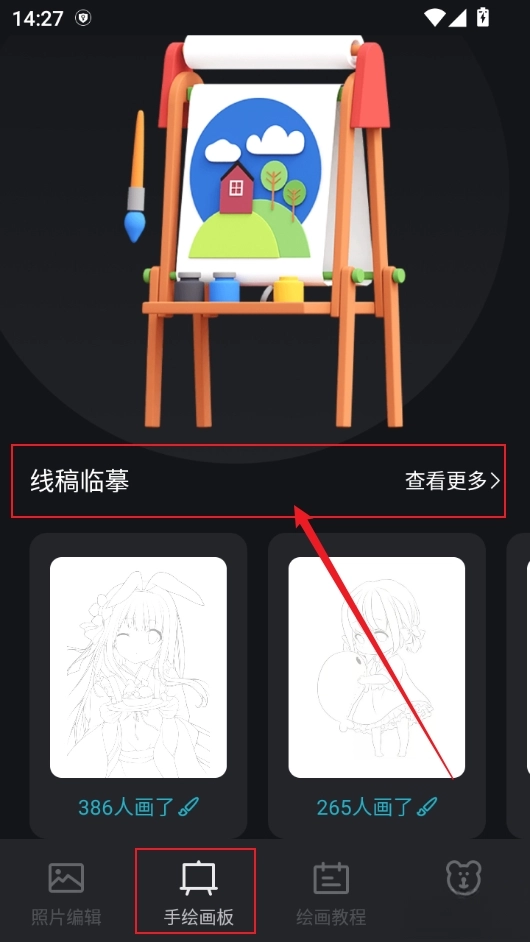 进入软件后点击手画绘板,选择线稿临摹