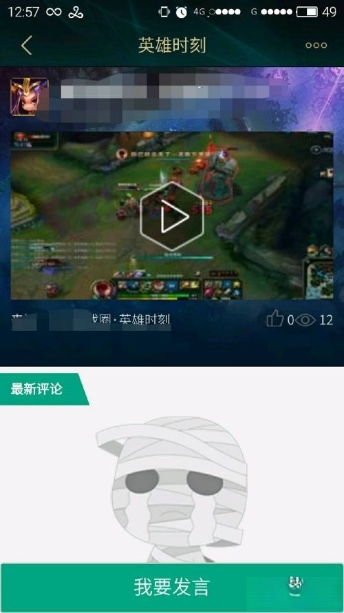 进入“英雄时刻”界面后,点击顶部最右侧的“我的”图标,即可进入你录制的英雄视频页面。