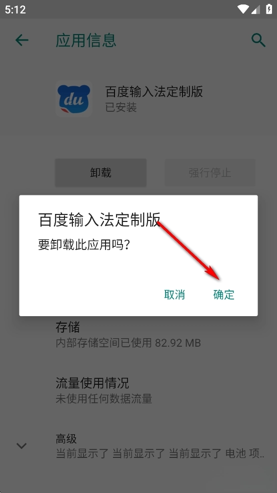 点击【确定】即可卸载百度输入法oppo定制版