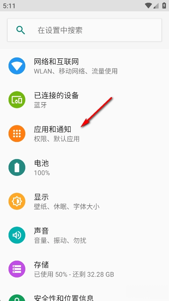 进入手机设置,点击【应用和通知】