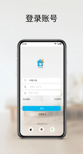 家家智联并完成安装,打开软件,注册新用户后登录。