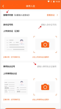 首先需自上而下核对并填写身份证与律师执业证的相关信息,上传对应的证件照片,完成后点击下一步。
