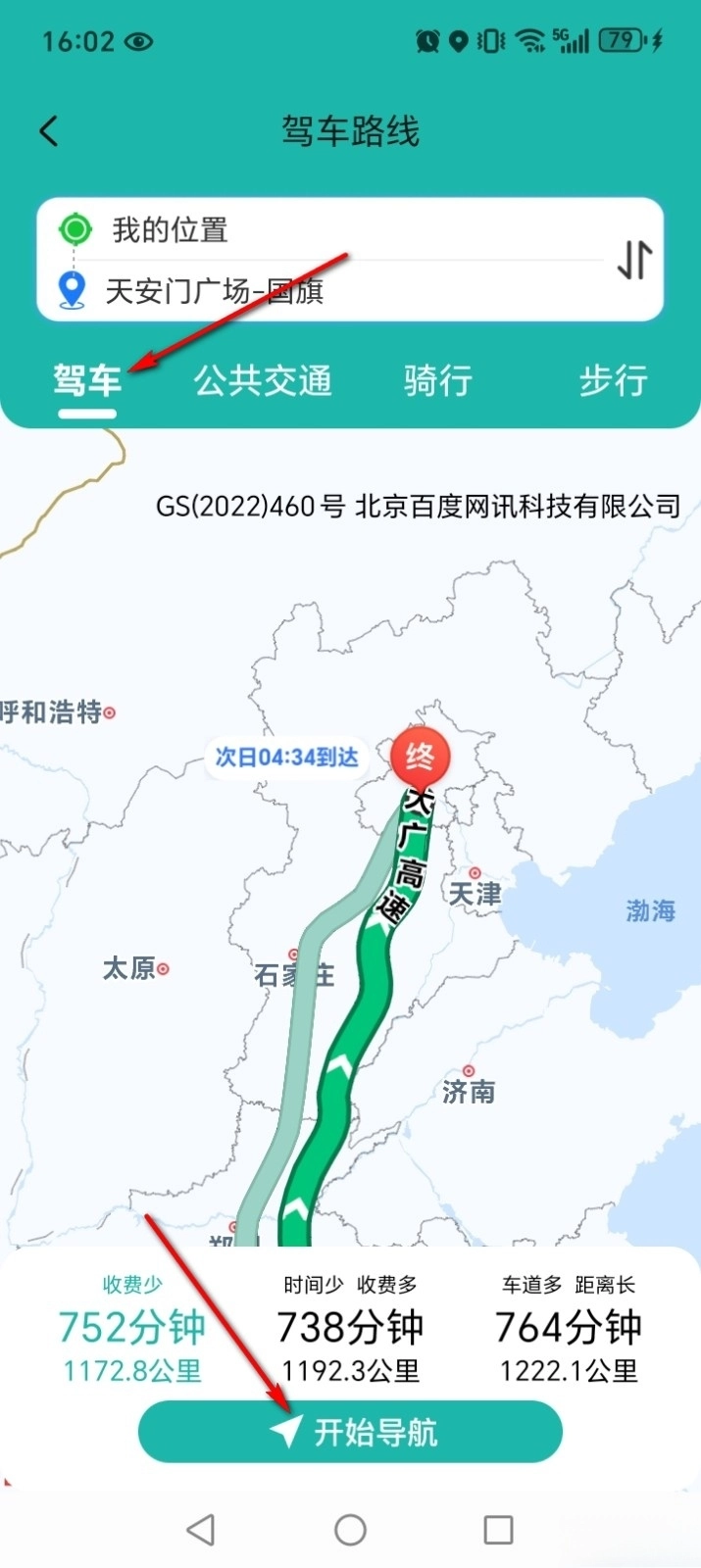 选择出行方式,点击【开始导航】