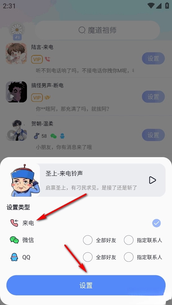趣铃是一款整合微信、QQ、充断电、闹钟及来电功能的手机铃声应用,各类提示音可一键完成设置,热门流行与海量铃声资源丰富齐全,能让你的来电更具个性,摆脱单调的系统铃声。