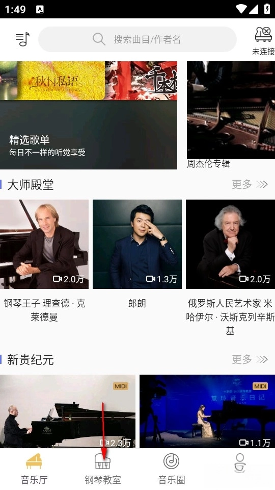 点击软件进入软件首页,我们在下方找到钢琴教室。