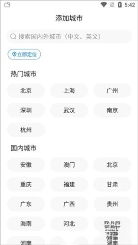 可以同时在线关注多个城市的天气变化,添加常用城市或旅行目的地城市后,就能一键切换查看天气情况。