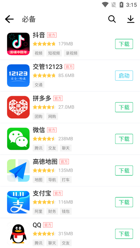 1、进入软件后,能看到十分丰富的应用分类,此外它还提供了手机必备软件推荐,我们点击进入该板块即可。