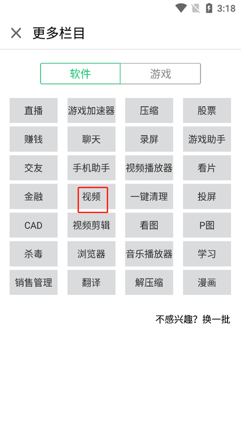 3、当然,要是你觉得首页的这些类型推荐并非自己所需要的,也可以点击那个+号;
