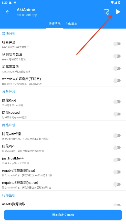 4、支持脚本运行 + 框架联动,能流畅运行 Frida 脚本实现深层调试,还能将软件开关同步至 Lsposed 框架,插件调试、脚本运行的适配性大幅提升。