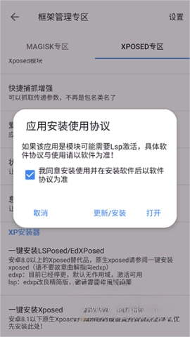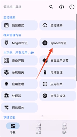 2、打开应用后,点击【xposed专区】进入对应的功能界面;