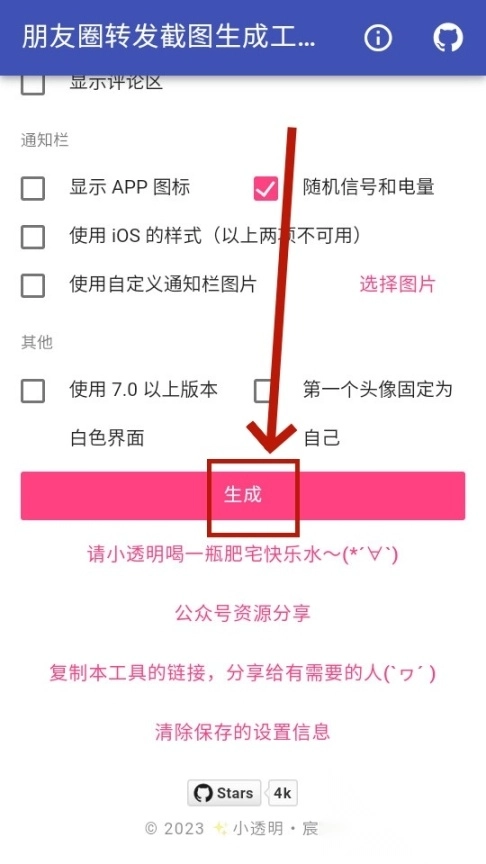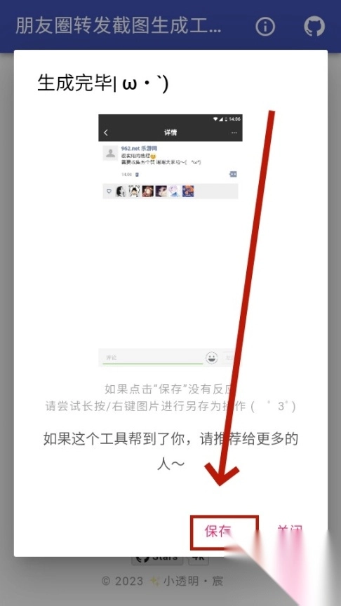 安装并打开朋友圈转发截图生成工具,持续点击“ok”按钮。