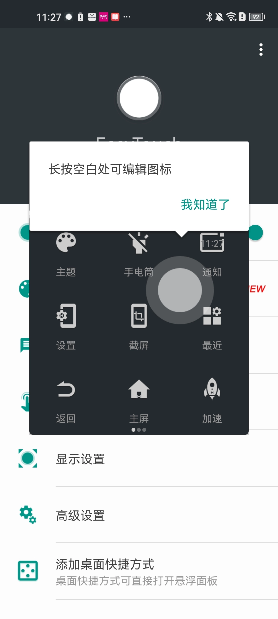 easy touch怎么添加桌面快捷方式?