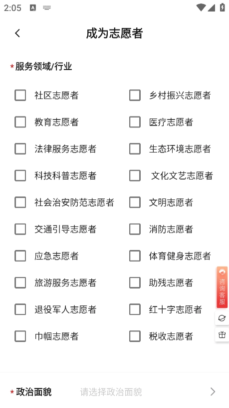 3、还可以根据需求勾选哪个领域的志愿者
