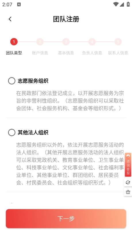 2、接着选择需要注册的账号类型
