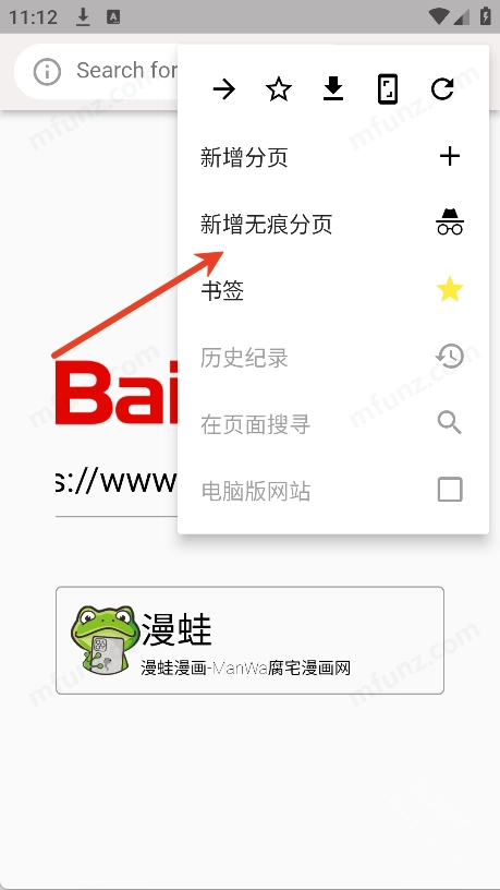 5、点击右上角三个点,选无痕分页即可开启无痕模式下的分页