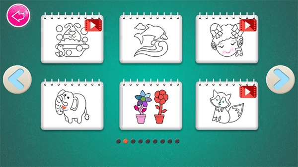 1、平台配备48张经精心设计的涂色底图,主题包含动物、植物、交通工具等儿童感兴趣的类别,每张底图都运用粗线条勾勒轮廓,方便儿童识别。