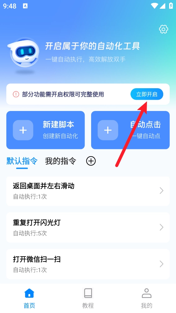 2、进入后首页,点击"立即开启"一键打开。