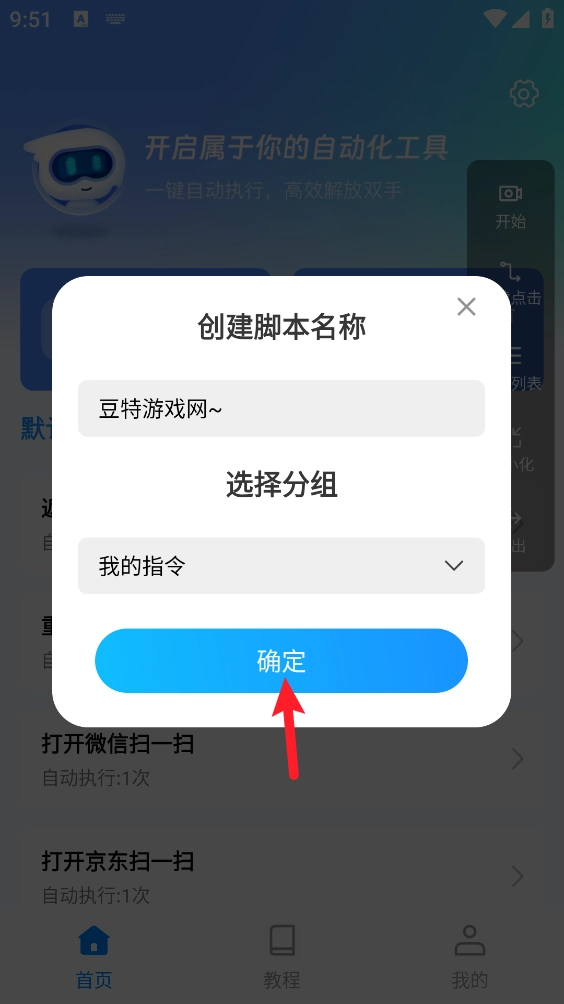 1、先在成功安装后,打开自动脚本点击。